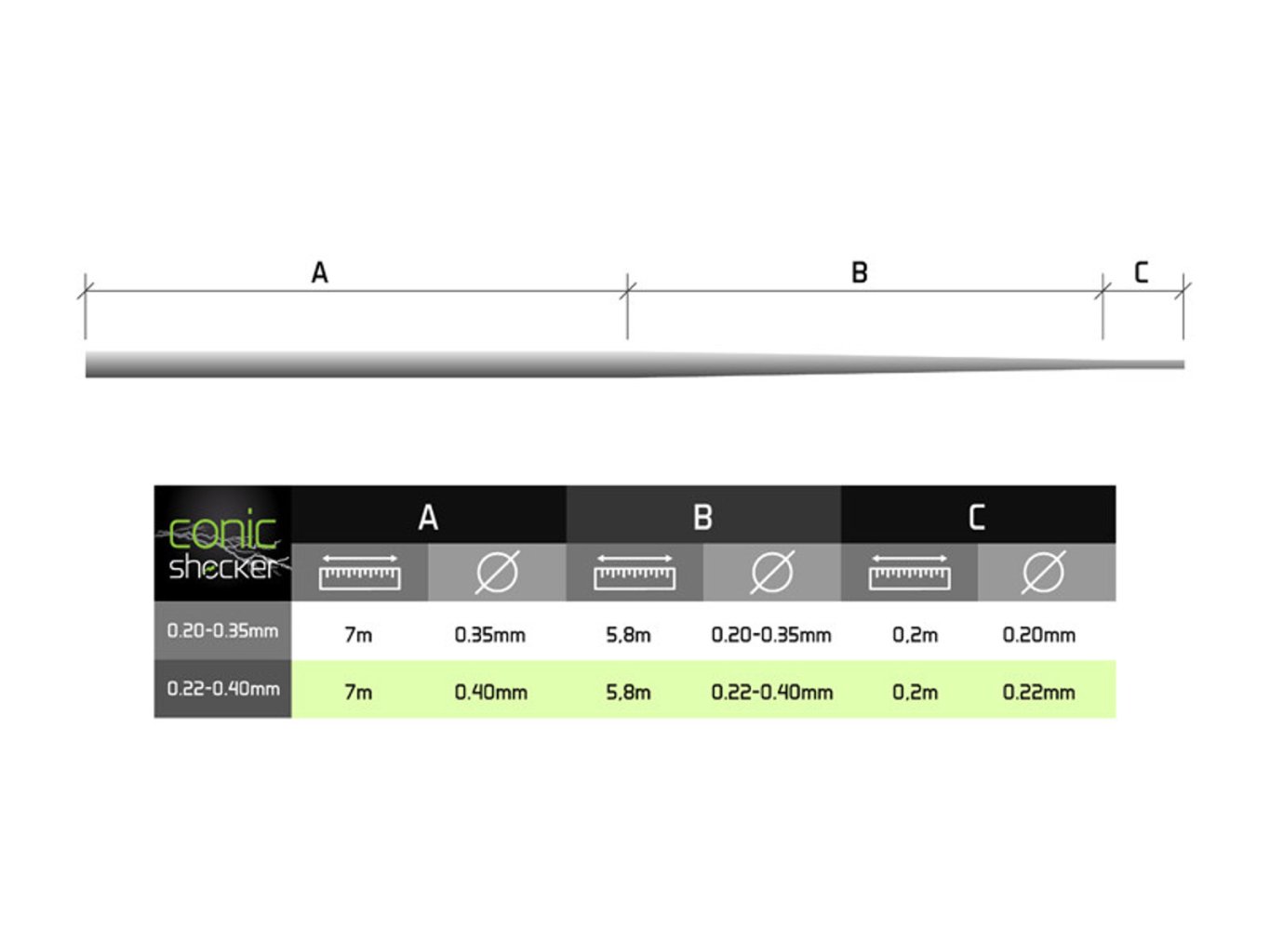 Podstata kónicky zúženého vlasce spočívá v postupně se měnícím průměru, díky čemuž je možné spojit jej s kmenovým vlascem pomocí velmi malého uzlíku. Právě to je jedním z klíčových parametrů pro mnohem snazší odvíjení vlasce z cívky a pro hladký průchod očky.