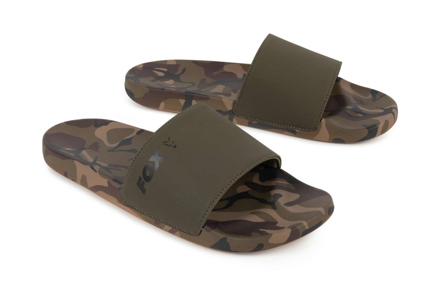 Pohodlné pantofle v barvě Khaki/Camo.Fox camo potisk.Syntetický svršek i podrážka.K dostání ve velikostech UK7 až UK12 (EU41 až EU46). Celý popis