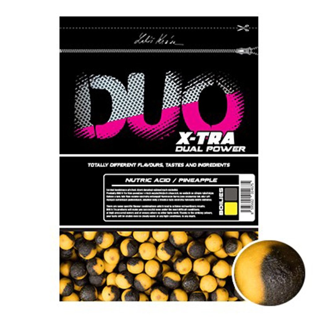 Nejlepší kombinace příchutí všech dob.Nutric Acid s Ananasem rybáři spolu používají už mnoho let s velkými úspěchy.Díky tomuto mixu jsou estery a jiné atraktanty do vody vylučovány postupně a po velmi dlouhou dobu.Pokud se zaměřujete na největší ryby v revíru, pak Nutric Acid/Pineapple je tou správnou volbou.Trvanlivé Boilies DUO X-Tra Vám pomůže i v těch nejsložitějších situacích, na vodách se silným rybářským tlakem a tam, kde Vám ostatní nástrahy nefungují! Kombinace našich nejúspěšnějších esencí a surovin, dělá z tohoto boilies nenapodobitelnou a velmi funkční návnadu/nástrahu. Celý popis