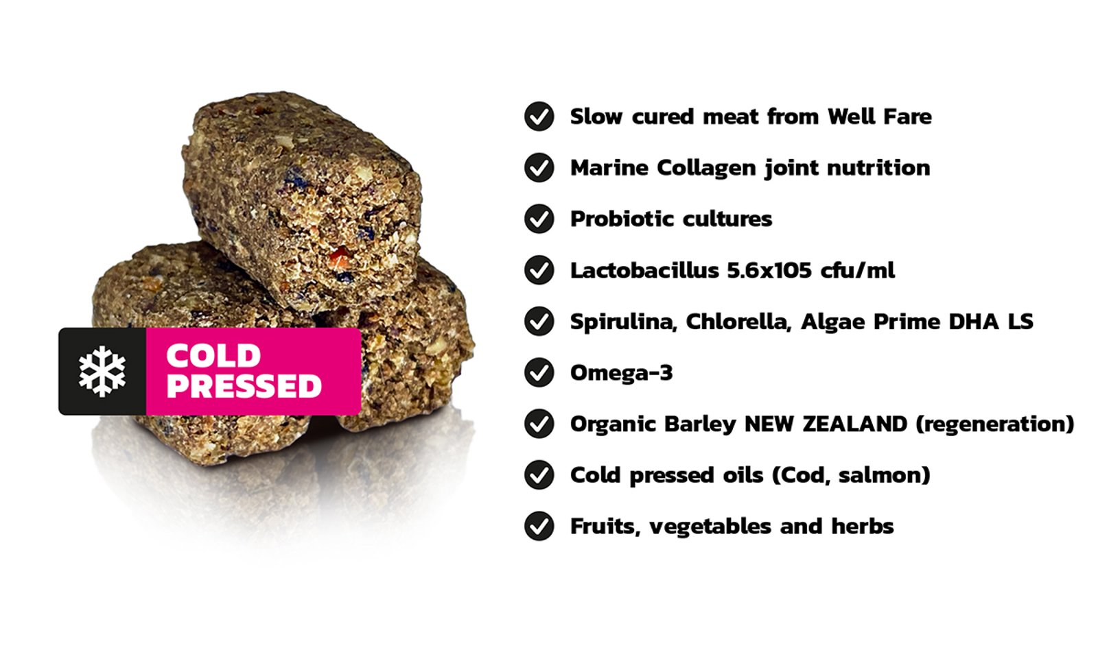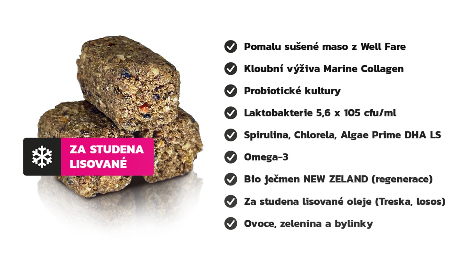 Díky technologii COLD PRESSED a použití čerstvých surovin je krmivo přirozeně atraktivní a chuťově přitažlivější. Lákavé bude i pro mlsné a náročné psí konzumenty.