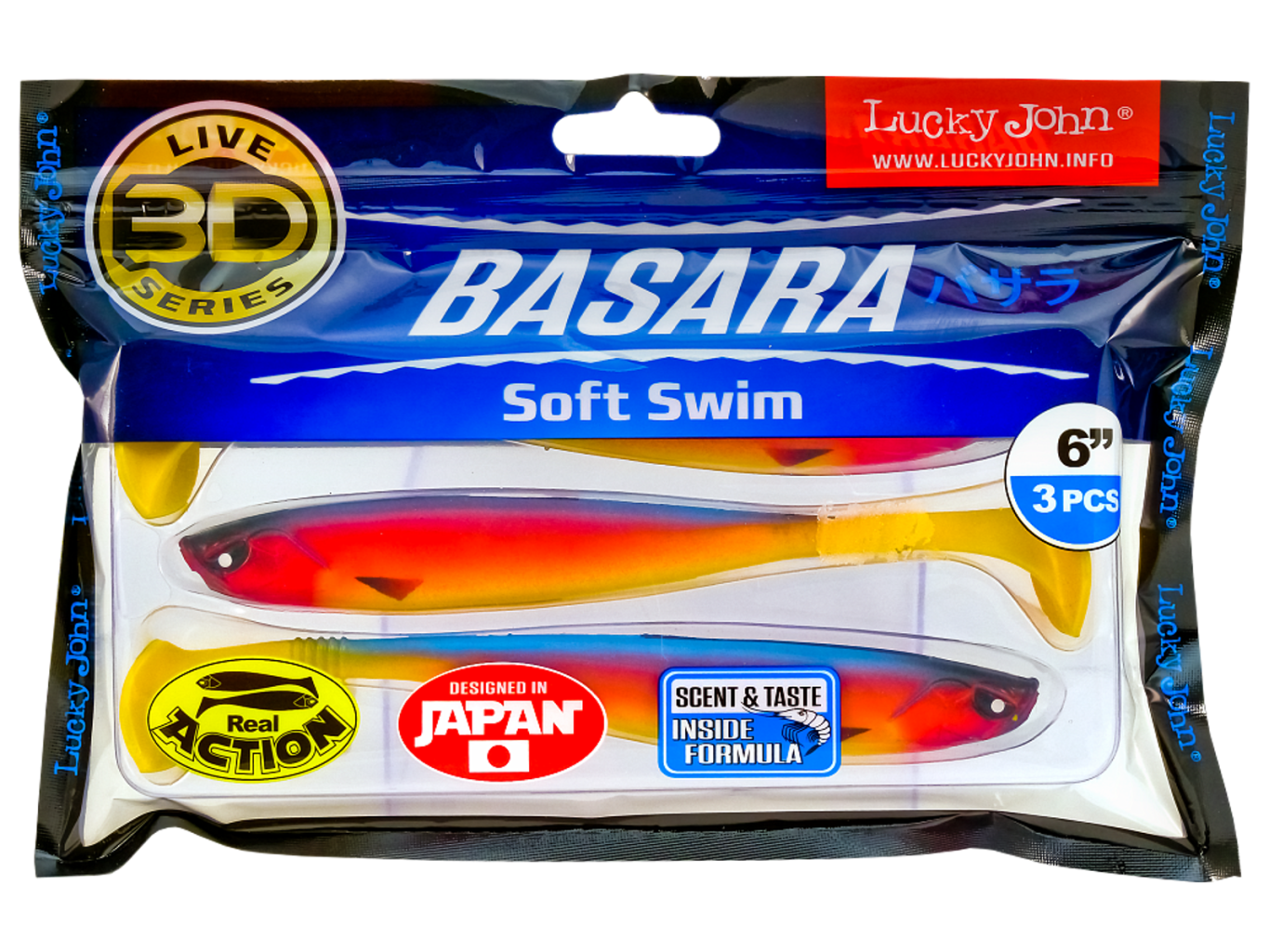 Novinka od Lucky John pro letošní rok přináší novou generaci umělých nástrah, které posouvají standardy v oblasti umělých návnad – Basara 3D Soft Swim. Tato revoluční gumová nástraha kombinuje realistický vzhled s unikátním 3D/holografickým zobrazením, které láká ryby z velké vzdálenosti. Díky dráždivému chodu ocasní části a patentovanému uchování vůně, je Basara 3D Soft Swim neodolatelná pro dravé ryby.