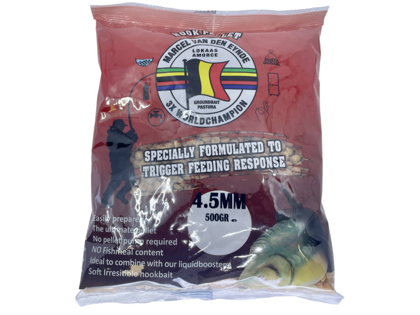 Tyto chytací pelety, určené primárně pro lov na method feeder, vyrábí společnost Marcel Van Den Eynde v Belgii. Jejich speciální, neutrální barva umožňuje snadné přijímání atraktantů i barev. Bez obarvení jsou ideální nástrahou na tmavém dně. Pelety skvěle kombinujte s tmavými rybími peletami nebo s živými nástrahami, jako jsou červi a žížaly.